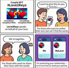 Love2Keyz is a couple’s NFT that celebrates love in all its forms. Designed to be owned as a pair, it's ideal for long-distance relationships, online couples, domestic partnerships, and LGBTQ connections. Record your love on the blockchain—forever and together.